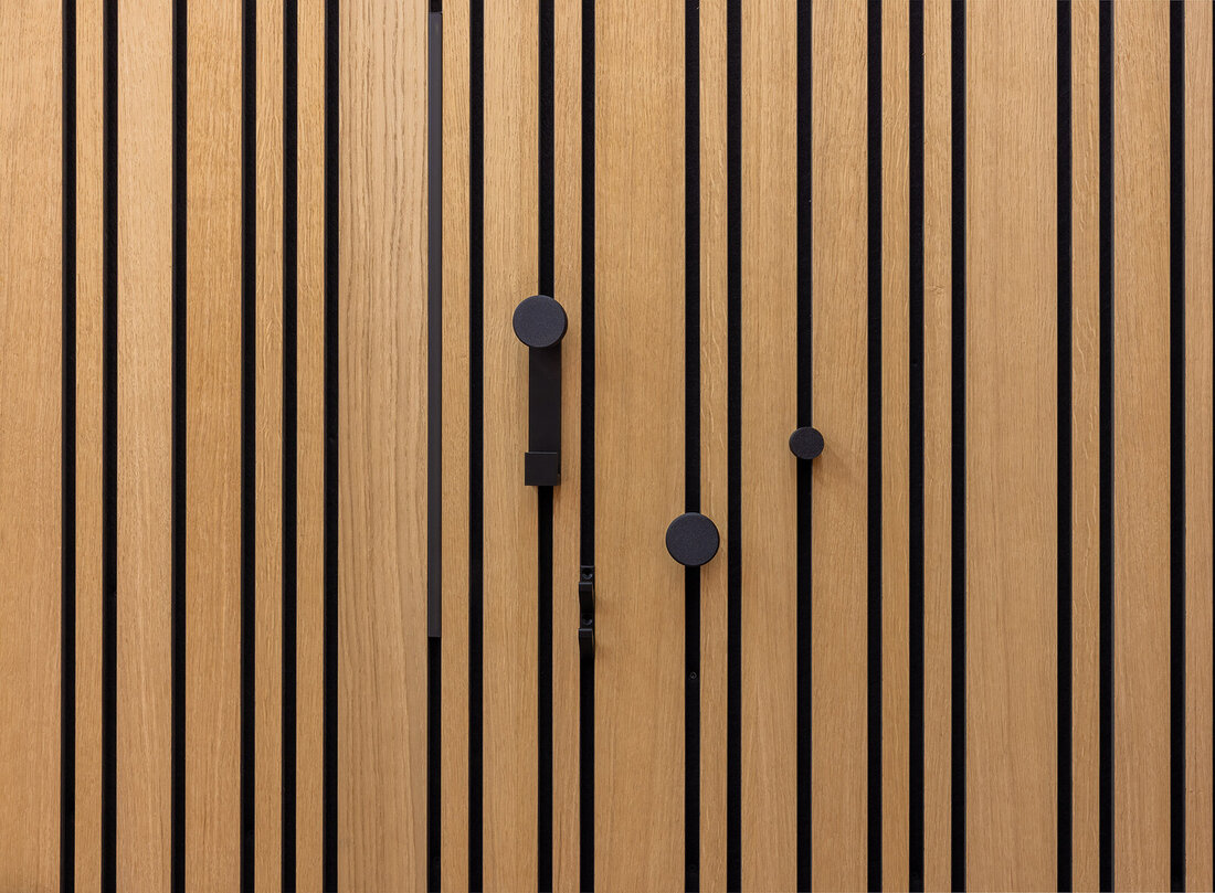 Und weil Funktionalität bei Schachermayer immer mitgedacht wird, gibt es passendes Zubehör, das Design und Nutzen perfekt verbindet. Akustikpaneele lassen sich nicht nur als dekoratives Gestaltungselement einsetzen, sondern auch clever funktional erweitern. Mit Mantelhaken, Huthaken und Hakenleisten aus hochwertigem Zinkdruckguss beziehungsweise Kunststoff in edlem Schwarz entstehen praktische Aufhängemöglichkeiten, die sich optisch harmonisch in die Lamellenstruktur einfügen.