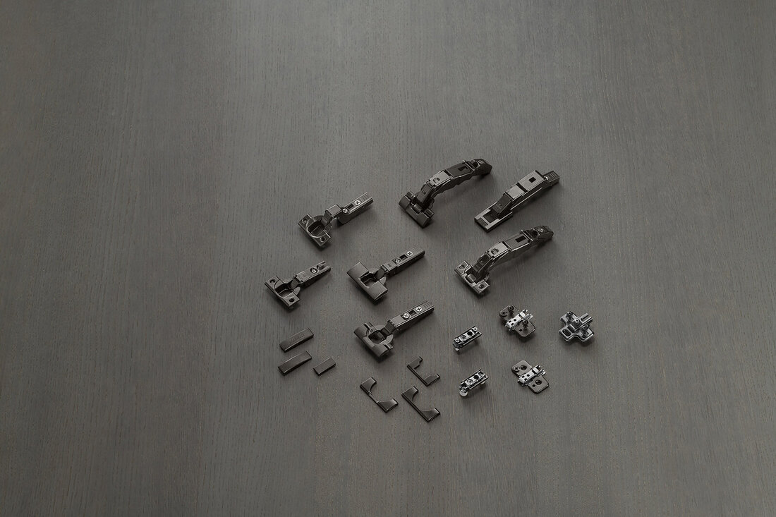 Der entscheidende Punkt ist aber nicht nur die Optik. Speziell im Arbeitsalltag eines Tischlers zählt, dass eine schöne Idee auch umsetzbar bleibt. Ohne Sonderlösungen, ohne Bauchweh bei der Montage, ohne Kompromisse beim Komfort. Darum sorgt Blum mit den onyxschwarzen Scharnieren dafür, diese für nahezu alle gängigen Anwendungen verfügbar zu machen. Von Standardtüren bis zu Weitwinkel- und Speziallösungen, etwa für Stollenanwendungen, dünne Fronten oder Glastüren.