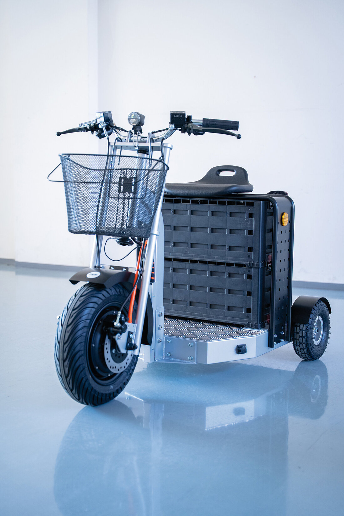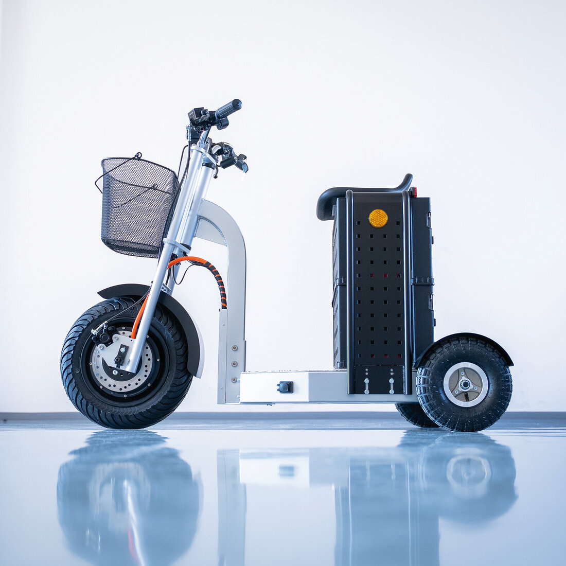 Das eTRIKE ist vielmehr ein rollender Arbeitsplatz als ein Fortbewegungsmittel. Dank der stabilen Stahlkonstruktion mit pulverbeschichteter Oberfläche trotzt das Gefährt auch härtesten Einsatzbedingungen. Türen, Aufzüge oder enge Gänge? Kein Problem: Die schlanke Bauform (nur 80 cm Breite) macht das Trike erstaunlich wendig. Für ein Plus an Ordnung und Effizienz gibt es Modelle mit integrierter Werkzeugkiste.