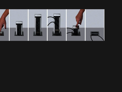 Ein Druck auf den Deckel genügt und die neueste Generation des Port Push fährt komplett und eigenständig hinauf. Durch Runterdrücken des Ports lässt sich dieser wieder versenken und gleitet sanft in seine Ausgangsposition zurück. Der bewährte Kippdeckel wird nun zum Kabeldurchlass und erlaubt somit auch das Versenken des Ports bei angesteckten Geräten.