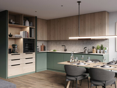 - einheitliche, flächenbündige Frontgestaltung mit gleichmäßigem Fugenbild