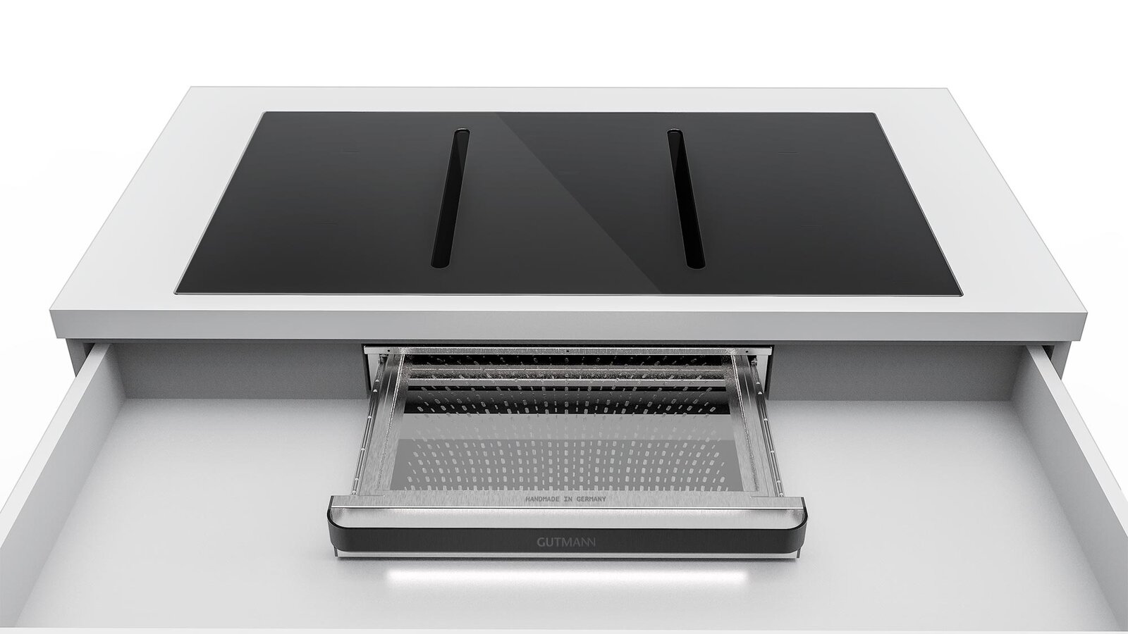 Die neuen Kochfeldleuchten eignen sich aufgrund ihrer schlichten Eleganz sehr gut für Küchen in minimalistischem Design. Somit ergänzen sie sich perfekt mit den neuen Muldenlüftern Nivel.